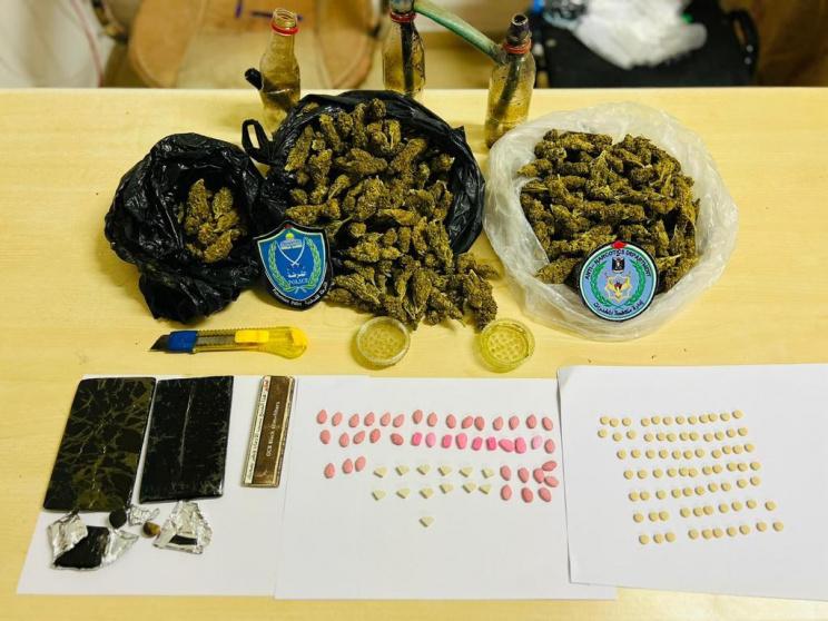 وعلى الفور تحركت القوة إلى المكان وضبطت كميات من المواد المشتبه أنها مخدرات، تنوعت بين الحشيش المخدر (727) غم، و(253) غم من القنب المصنع والمهجن و(260) من حبوب الاكستازي و(8.5) غم كريستال، سيجارتين إلكترونية تحتوي على مادة القنب.