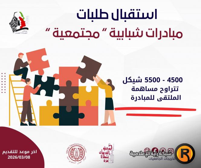 أعلنت جمعية الخريجات الجامعيات في فلسطين عن فتح باب التقديم للمبادرات الشبابية المجتمعية المبتكرة، ضمن جهودها لتعزيز المشاركة الشبابية ودعم المبادرات المجتمعية التي تساهم في تطوير المجتمع الفلسطيني في غزة وبقية المحافظات.