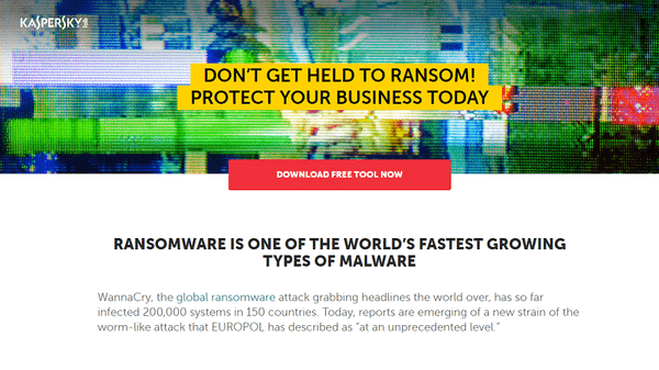 وتظهر النتائج أن الحماية المجانية والمتقدمة متاحة لجميع الشركات التي تشعر بالقلق إزاء الهجمات الإلكترونية على غرار "وانا كراي". وتعد أداة كاسبرسكي لمكافحة فيروسات الفدية للشركات والتي أطلقت في عام 20166، مناسبة للشركات التي لا تستخدم حلول كاسبرسكي لاب، أو تلك التي تستخدم حلول حماية غير فعالة في منع فيروسات الفدية. فهو أداة مجانية متوافقة مع منتجات الأمن الخاصة بالطرف الثالث. فمن السهل تثبيتها ولا تتطلب معرفة تقنية معمقة لضبطها وإدارتها.