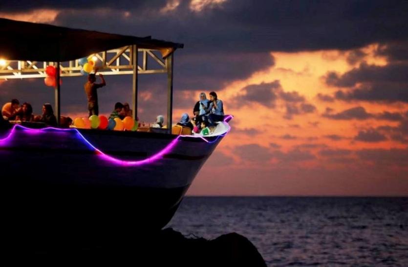 على غير العادة، استحدث صاحب أحد الاستراحات البحرية بغزة طريقة جديدة لجذب مزيدا من الزبائن، فخرج بفكرة هي الأولى من نوعها، عبر بناء قسم جديد على شكل قارب كبير يقع داخل مياه البحر على شاطئ غزة، يختص بتقديم وجبات الأسماك الطازجة التي يتم اصطيادها من ذات البحر.