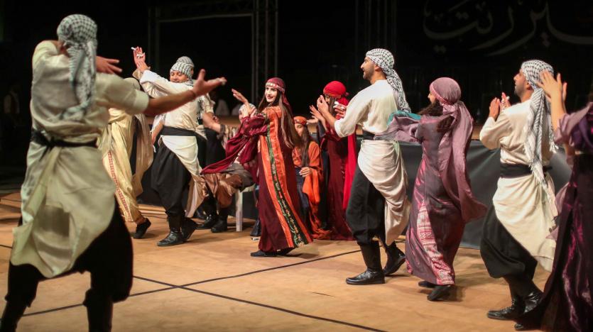 أما راقصو فرقة جذور للدبكة الشعبي، والمكونة من 16 طالبا وطالبة من جامعة بيرزيت، فقدموا رقصات جديدة من التراث الفلسطيني والعربي، والرقصات من تصميم وتدريب الفنان محمد عطا، وتوزيع الفنان عبد الحليم أبو حلتم.