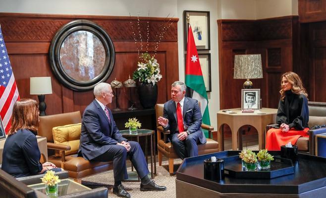 التقى العاهل الأردني عبد الله الثاني نائب الرئيس الأمريكي مايك بنس ظهر اليوم الاحد في العاصمة الاردنية عمان.