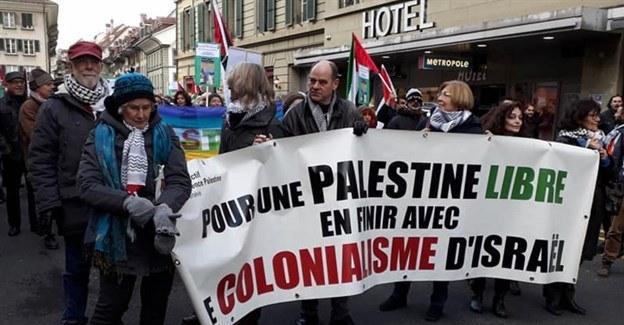تظاهر مئات الاشخاص، في العاصمة السويسرية برن، دعما للشعب الفلسطيني، وضد الاعتراف الامريكي بالقدس كعاصمة لإسرائيل.