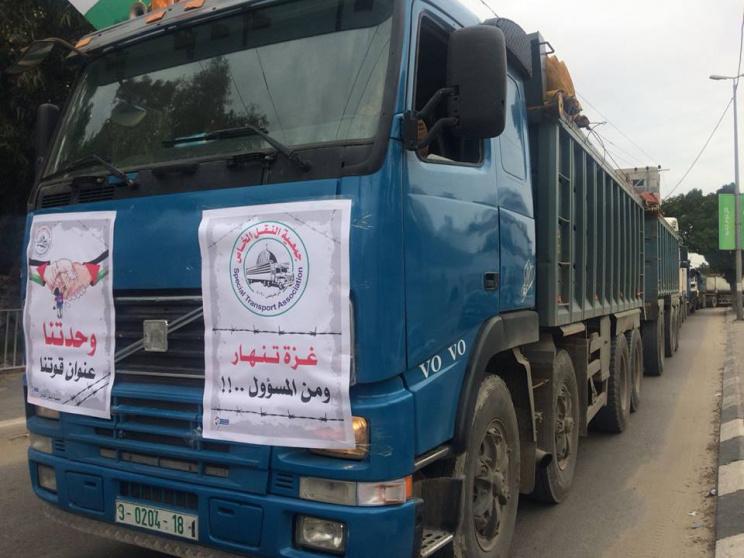 وانطلقت شاحنات نقل البضائع في المسيرة الاحتجاجية من وسط قطاع غزة، وجابت شوارع مدينة غزة.