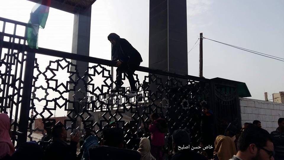 وفي مشهدٍ آخر غريب وجديد كليا، لم تتمالك سيدة فلسطينية أعصابها، وقررت أن تتسلق بوابة معبر رفح للسماح لها بالسفر.