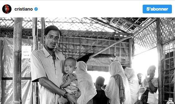 ووضع النجم البرتغالي رونالدو، صورة له مع أطفاله، وأخرى لعائلة من مسلمي الروهينغا، بالأبيض والأسود. وكتب عليها: "عالم واحد ونحن جميعا نحب أولادنا، أرجوكم ساعدوا الروهينغا".