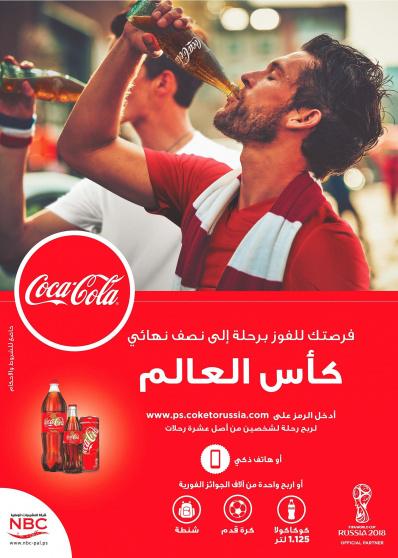 أطلقت شركة المشروبات الوطنية كوكاكولا/كابي حملة "كأس العالم 2018"، في كافة محافظات الضفة الغربية وقطاع غزة، وذلك استكمالاً لفعاليات احتفالية استقبال النسخة الأصلية من كأس العالم في فلسطين، والتي تواصلت منذ السابع عشر وحتى التاسع عشر من الشهر الجاري في مقرّ الشركة.