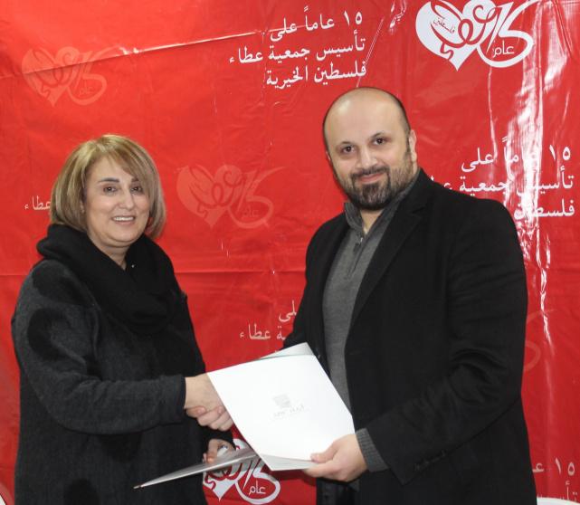ووقع الاتفاقية في مقر جمعية عطاء فلسطين الخيرية برام الله السيدة رجاء أبو غزالة، رئيس مجلس إدارة الجمعية والسيد نادر حواري نائب الرئيس التنفيذي لشؤون عمليات الشركة القابضة وتطوير الأعمال في أيبك.