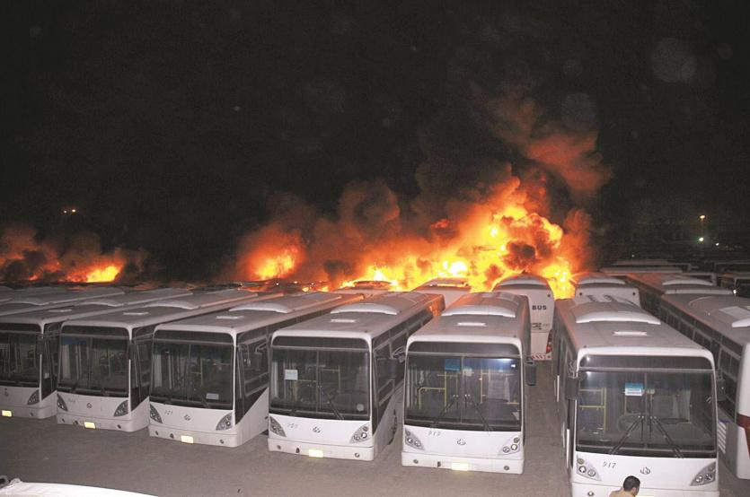 اندلاع حريق بعدة حافلات ركاب بموقف سيارات في طمرة