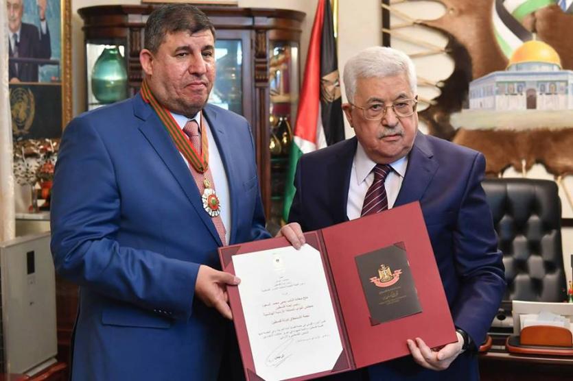 قلد الرئيس محمود عباس، رئيس لجنة فلسطين بمجلس النواب للمملكة الأردنية الهاشمية، النائب يحيي محمد السعود، نجمة الاستحقاق لدولة فلسطين.