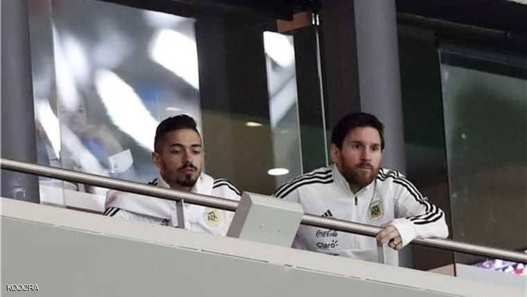 ميسي اثناء حضوره لقاء مبارة بلاده ضد اسبانيا