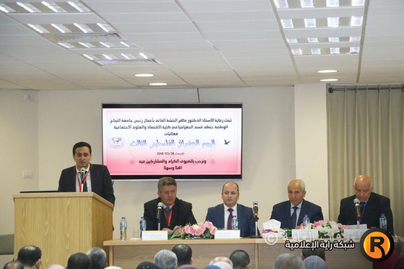 تحت رعاية الأستاذ الدكتور ماهر النتشة، القائم بأعمال رئيس جامعة النجاح الوطنية، أطلق قسم الجغرافيا في كلية الاقتصاد والعلوم الاجتماعية يوم الاربعاء الموافق 28/3/2018، فعاليات اليوم الجغرافي الفلسطيني الثالث، وأُقيم حفل الافتتاح في مدرج كلية الشريعة في الحرم الجامعي القديم.