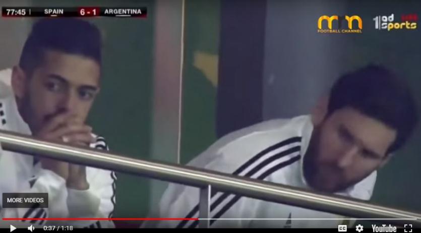 شاهد الأرجنتيني ليونيل ميسي، قائد منتخب التانغو من المدرجات خسارة بلاده المذلة أمام المنتخب الإسباني 1-6، الثلاثاء، في إطار استعدادات المنتخبين لكأس العالم 2018 في روسيا.