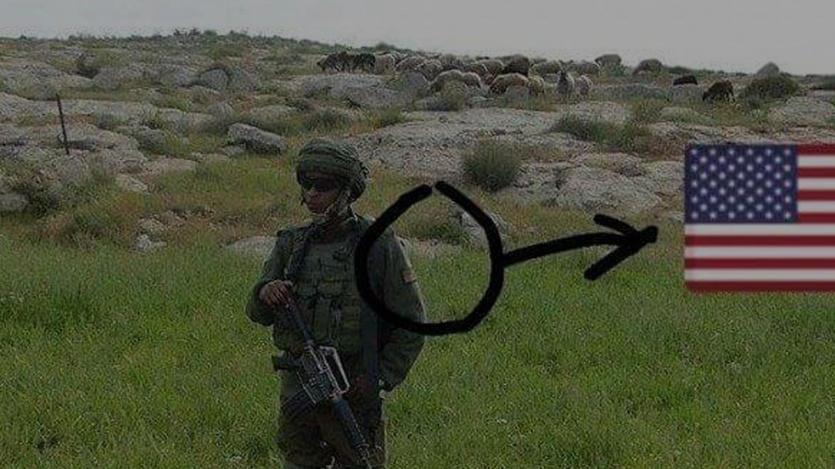 تداول فلسطينيون على مواقع التواصل، خلال الأيام الأخيرة، صورة تظهر جنديًا يضع علمًا أمريكيًا على كتفه خلال قمع جيش الاحتلال لمسيرة في قرية سوسيا المهددة بالتهجير، في بلدة يطا بمحافظة الخليل.