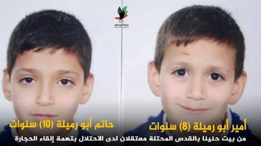 الطفلان أمير وحاتم أبو رميلة من بيت حنينا بالقدس المحتلة اعتقلا قبل نحو 10 أيام بتهمة إلقاء الحجارة.