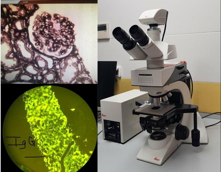 وأضاف البوريني أن المستشفى قامت بابتعاث فنيّة مختبر أنسجة من طاقم الوحدة إلى المملكة الأردنية، والتي حصلت على تدريب مكثف في آلية صبغ عينات الكلى بالصبغات المناعية Immunofluorescence، موضحا أنه وبوجود المجهر المناعي الضوئي فقد أصبح من الممكن عمل الخزعات وقراءة العينات بتقنية عالية، وبشكل أكثر سهولة وسرعة من السابق دون الحاجة للاستعانة بالمختبرات الطبية الأخرى، و بالتالي التشخيص الدقيق لأمراض الكلى التي تصيب الكُبب الكلوية والأنابيب الكلوية والأنسجه الداعمة، ومن ثم توفير العلاج المناسب.