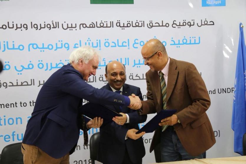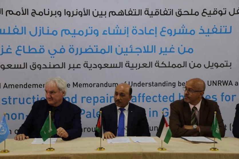وقال الحساينة خلال رعاية توقيع مذكرة تفاهم بين وكالة الغوث وبرنامج الأمم المتحدة الإنمائي ( UNDP ) أن المبلغ يشمل تعويض (280 ) وحدة سكنية تعرضت للهدم الكلي، و( 85) وحدة تعرضت لأضرار جزيئة غير صالحة للسكن.