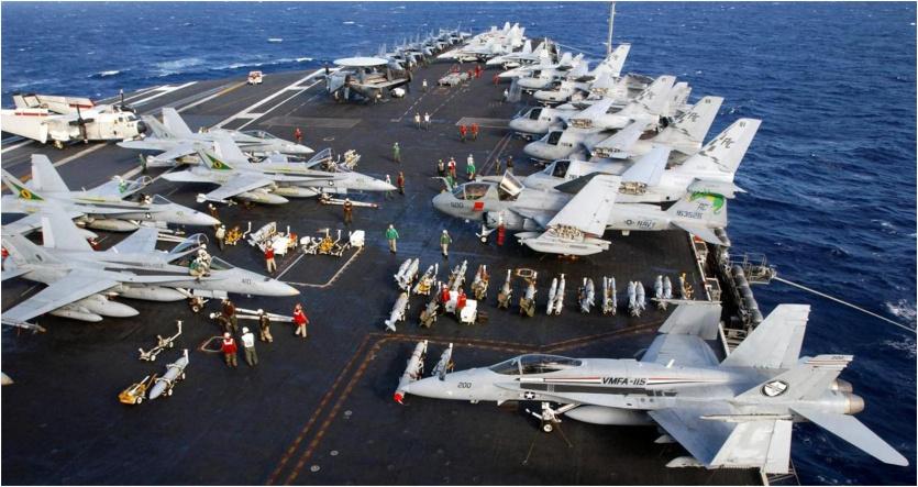 وتشمل قائمة السفن المتوجهة نحو شرق المتوسط، حاملة الطائرات العملاقة العاملة بالطاقة النووية "يو إس إس هاري إس ترومان"، التي بمقدرها حمل 90 طائرة.