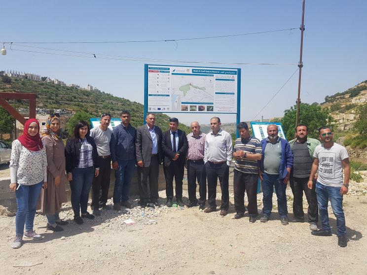 وأشارت دائرة الإعلام الالكتروني في موقع محميات فلسطين، بان تركيب اللوحات الارشادية تم بالشراكة مع سلطة جودة البيئة وبالتعاون مع البلديات ذات العلاقة بدعم من الاتحاد الأوروبي، ضمن إطار تعزيز مبدأ الشراكة والتعاونية في العمل على استدامة المحميات الطبيعية وتعزيز السياحة البيئية في المحميات الطبيعية.