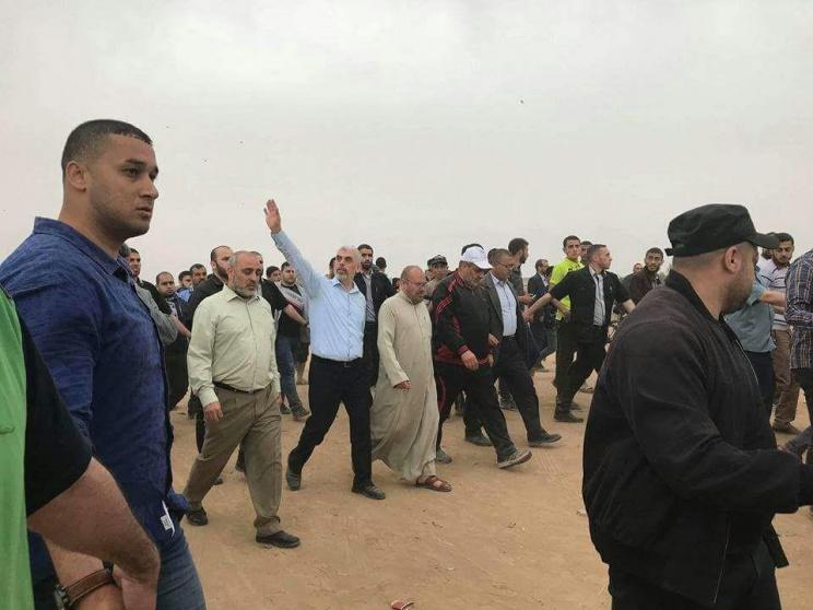 شارك رئيس المكتب السياسي لحركة حماس اسماعيل هنية، ورئيس الحركة في قطاع غزة يحيى السنوار وعدد من قادة الحركة، في مسيرات العودة على حدود القطاع.