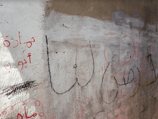 في زقاق المخيم الذي يعيش فيه بمنطقة "الفالوجا" شمال غزة، كان الطفل ايوب يخط على الجدران بالفحم والطباشير والأقلام السائلة الكبيرة، حيث كثرت شعاراته وكتاباته، يشير أحد أصدقائه الى عبارة كتبها الشهيد "الأرض لنا"، وفي غرفته كتب "عايش جكر ومجنن البشر".