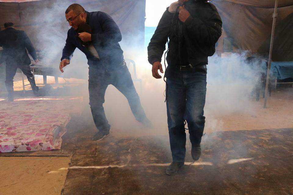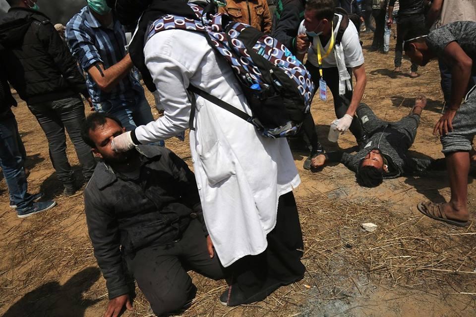 واستهدفت قوات الاحتلال النقطة الطبية الميدانية التي أقيمت شرق مخيم البريج وسط القطاع بكميات كبيرة من غاز مجهول وبشكل عِشوائي، مما أدى إصابة العشرات بالاختناق التشنج والقيء الشديد، تم تحويلهم لمستشفى شهداء الاقصى لصعوبة حالتهم.
