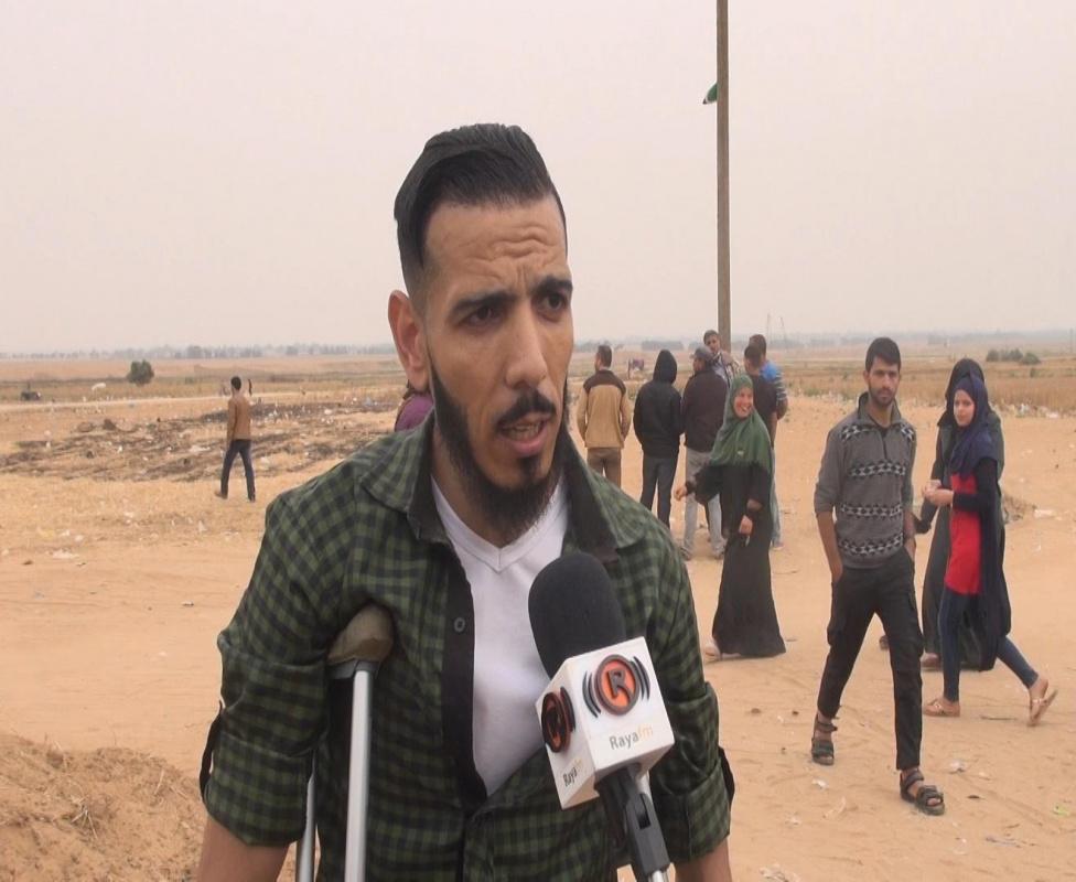وأكد حامد وهو يقف بصعوبة أن اعلان ترامب المشئوم باطل، مشددا ان الرسالة التي يحملها تقول: "أن الشباب الفلسطيني لا يهاب الغاز ولا رصاص الاحتلال ورغم كل أشكال الارهاب الاسرائيلي سيشارك الفلسطينيون في المسيرات والنضال حتى العودة لبيوتهم.