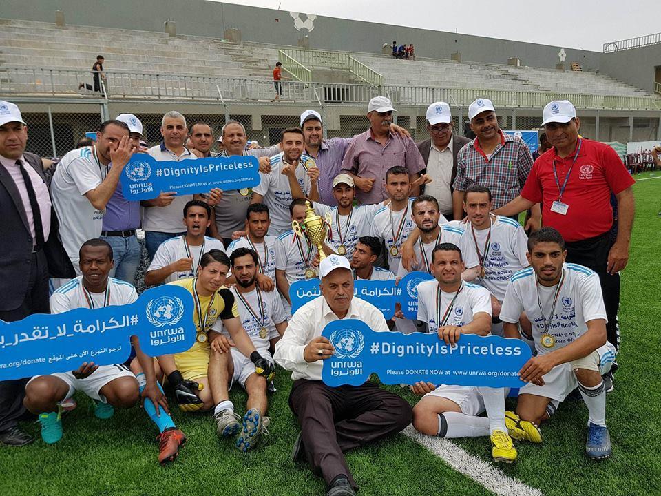 وفي نهاية المباراة أعلن المعلق الفلسطيني احمد سعد عن فوز فريق موظفي الأونروا على فريق شباب اللاجئين بثلاثة أهداف مقابل هدفين في مباراة رمزية استمرت نصف ساعة للشوطين.