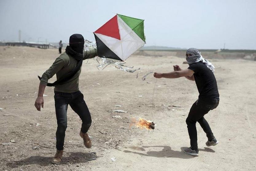 وتعد ظاهرة الطائرات الورقية المحملة بمادة مشتعلة، إحدى الوسائل التي يستخدمها المتظاهرون في مسيرة العودة السلمية، منذ انطلاقها بتاريخ 30 مارس الماضي، وسببت خسائر مادية فادحة.