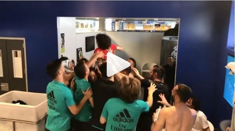 ونشر مارسيلو عبر حسابه الرسمي على موقع التواصل الاجتماعي "إنستغرام"، فيديو لنجله وهو يتبادل الكرة بالرأس ببراعة فائقة مع لاعبي الريال في غرفة تغيير الملابس، قبل أن يوصلها إلى الهدف، لتنطلق بعد ذلك احتفالات لاعبي النادي الملكي بمارسيلو الصغير، الذي يتوقع له الجميع أن يسير على درب والده.