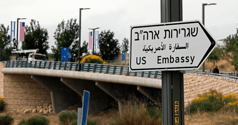 لافته كتب عليها السفارة الامريكية في القدس