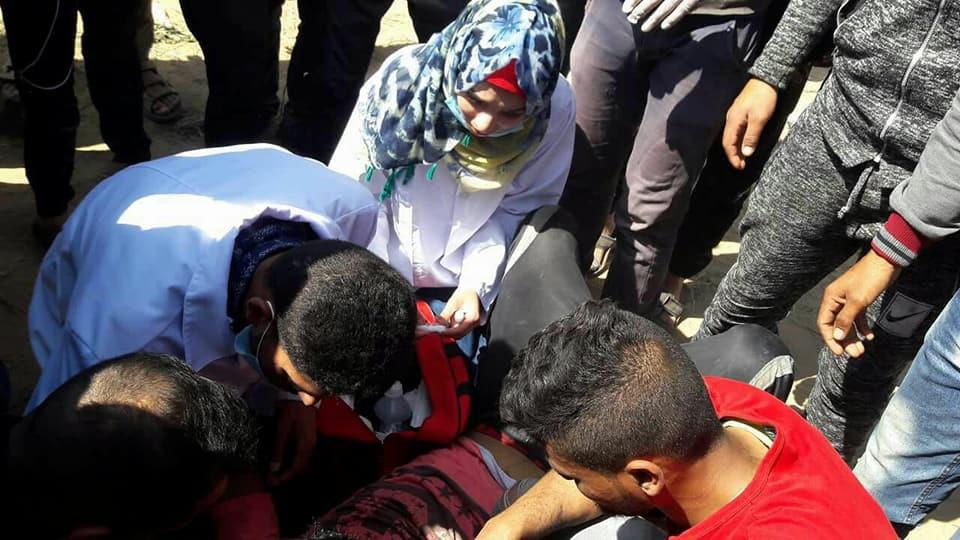 وأعلنت وزارة الصحة بغزة عن استشهاد المسعفة الميدانية رزان اشرف النجار ( 21 عاما) شرق خانيونس جنوب قطاع غزة، بالاضافة الى اصابة 100 آخرين منها 40 بالرصاص الحي.