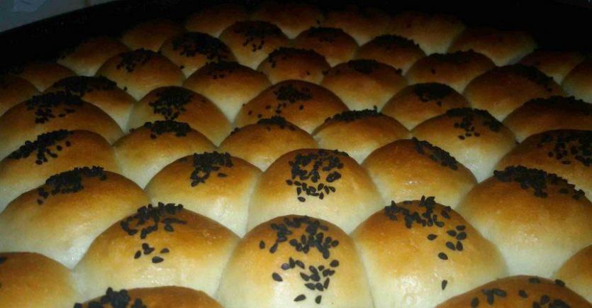 إدهني الوجه بالبيض والحليب والسمن السائل ثم رشي السمسم وحبة البركة على سطح العجينة.