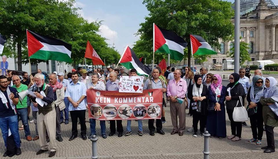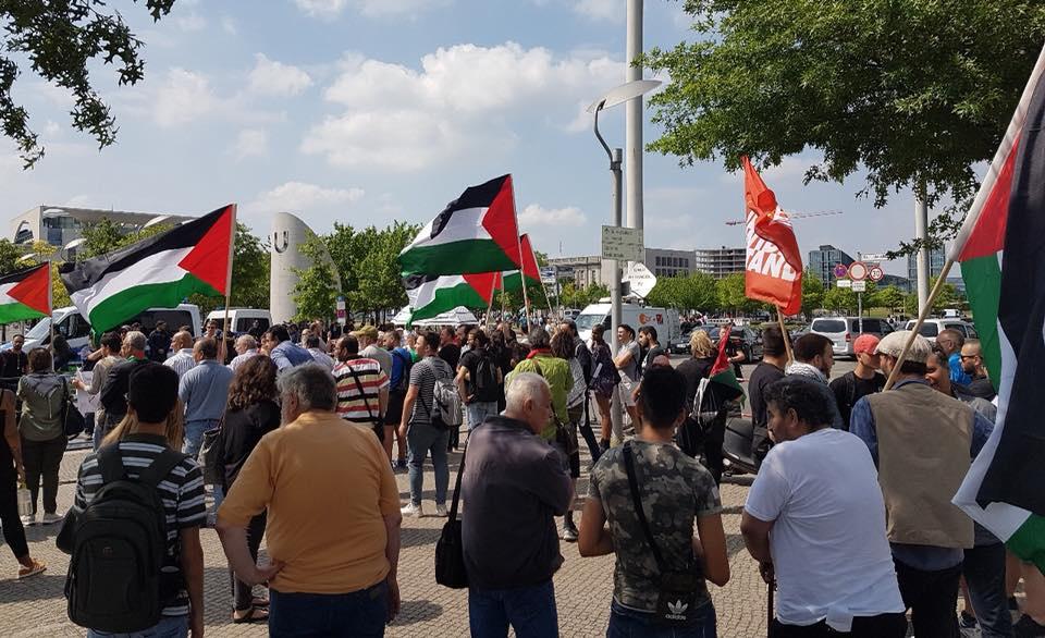 شارك أمس الإثنين، المئات من أبناء الجالية الفلسطينية والعربية والمسلمة والمتضامنين من الاحزاب اليسارية الألمانية في اعتصام حاشد أمام مقر المستشارية الالمانية والبرلمان الألماني في العاصمة الألمانية برلين، تنديدا ورفضا لزيارة بنيامين نتنياهو رئيس وزراء دولة الاحتلال الإسرائيلي.