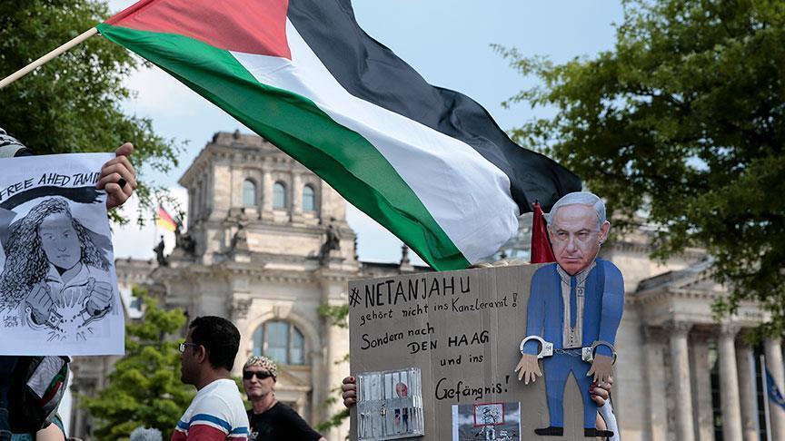 مظاهرة أمام مقر ميركل تنديدا بزيارة نتنياهو