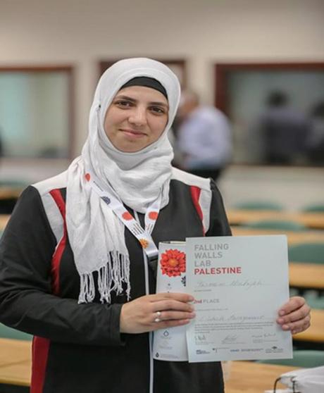 استطاعت الطالبه تسنيم أبو حجله و هي طالبه في برنامج ماجستير الصحه العامه في كلية الدراسات العليا بجامعه النجاح الوطنيه أن تفوز بالمركز الثاني على مستوى فلسطين في مسابقه الجدران المتساقطه -Fall Walls Lab Palestine- و هي مسابقة تقدمها مؤسسة (DAAD) في معظم دول العالم بحيث تجري على مستوى كل دولة ويتأهل الفريق الفائز للمرحلة النهائية في ألمانيا.