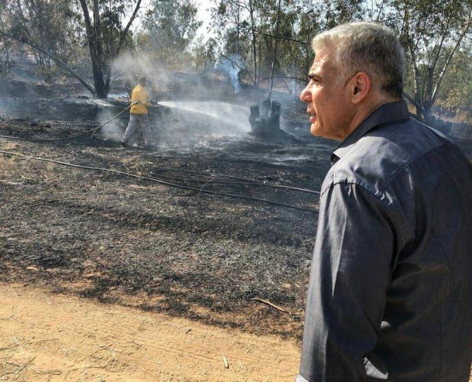 لبيد ينتقد سياسة نتنياهو في التعامل الطائرات الورقية الحارقة