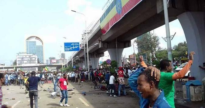 وكان أبي أحمد يخطب أمام حشود في ساحة ميسكل بالعاصمة أديس أبابا، حملوا لافتات كتب عليها "حب واحد .. إثيوبيا واحدة".