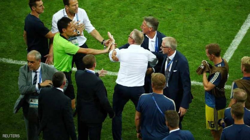 وكانت لقطات المباراة أظهرت قيام أحد إداريي المنتخب الألماني بالاتجاه نحو مقاعد بدلاء السويد للاحتفال بشكل استفز مدرب الأخير يانه أندرسون.
