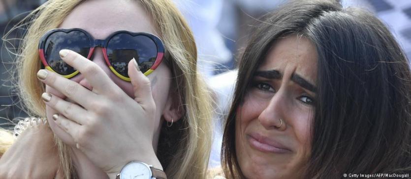 وانتشر شعور بالصدمة بين آلاف المشجعين الذين تجمعوا عند نصب بوابة براندبرغ لمتابعة المباراة. وانفجر بعضهم بالبكاء.