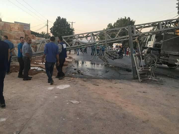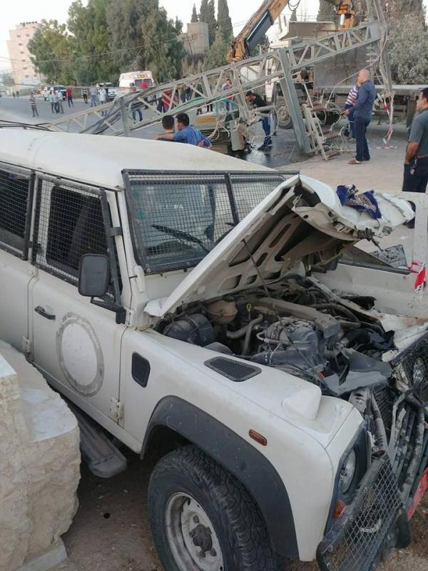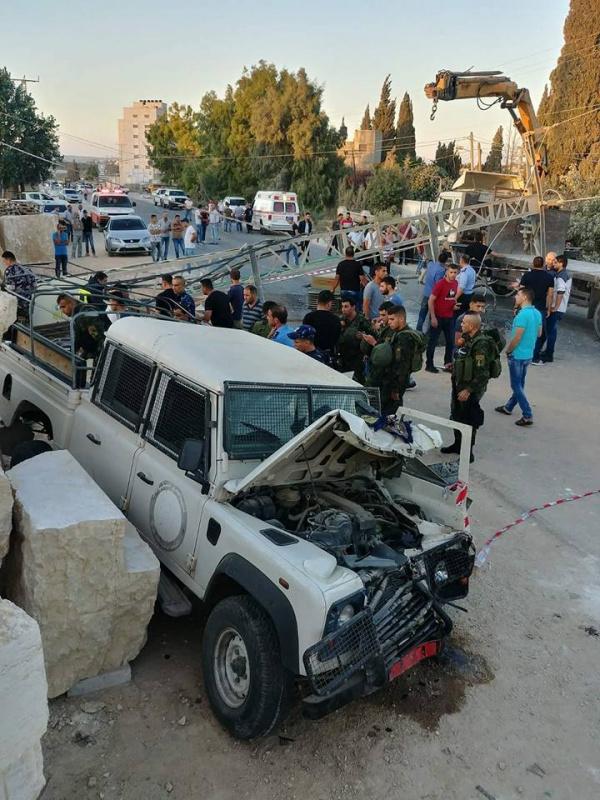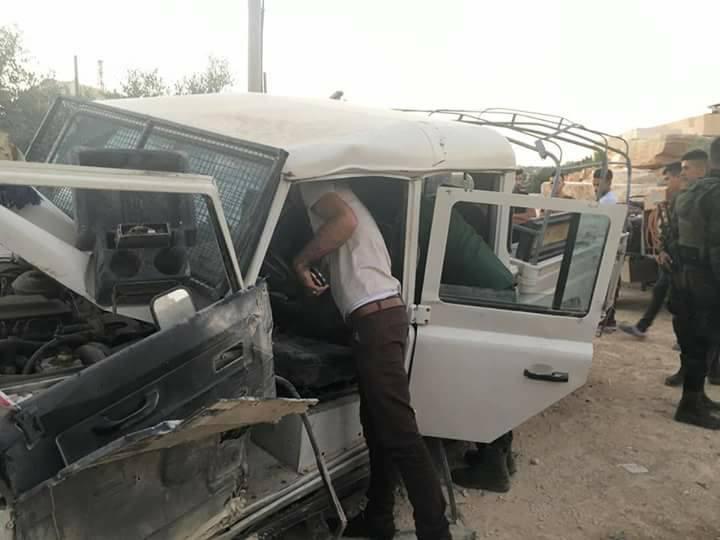 وأفادت مصادر محلية، أن الحادث ناجم عن اصطدام قوي لدورية تتبع للأمن الوطني بعمود كهرباء ضغط عالي، حيث أن الاصطدام جرى على مفترق مثلث الشهداء على شارع جنين نابلس جنوب جنين.