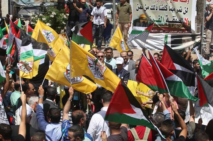 تظاهر المئات وسط مدينة رام الله بدعوة من فصائل العمل الوطني وفي مقدمتها حركة فتح تنديداً بصفقة القرن.