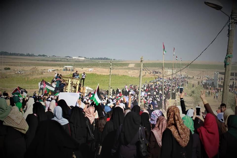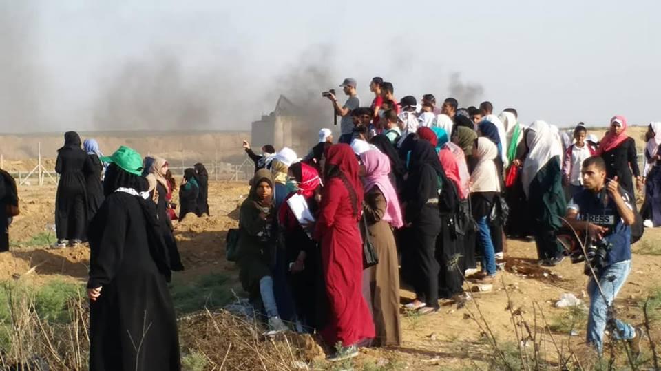وقالت وزارة الصحة بغزة، إن الاحتلال الاسرائيلي استهدف النساء المشاركات في فعاليات مسيرة العودة شرق غزة بالأعيرة النارية والغازات المجهولة وأصاب العشرات منهن بجراح مختلفة والاختناق.