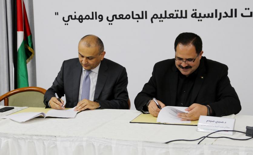 وقعت وزارة التربية والتعليم العالي ممثلة بوزيرها د. صبري صيدم، ومجموعة الاتصالات الفلسطينية ممثلة برئيسها التنفيذي عمار العكر، اليوم الأحد، مذكرة تفاهم لتوزيع 550 منحة دراسية جامعية على مجموعة مختارة من الطلبة الناجحين في امتحان الثانوية العامة "الإنجاز"، في الضفة الغربية وقطاع غزة، كما وقّع الجانبان مذكرة أخرى لرعاية المتفوقين في امتحان الثانوية العامة، ورعاية حفل تكريم أوائل "الإنجاز" والجامعات والكليات وذوي الإعاقة.