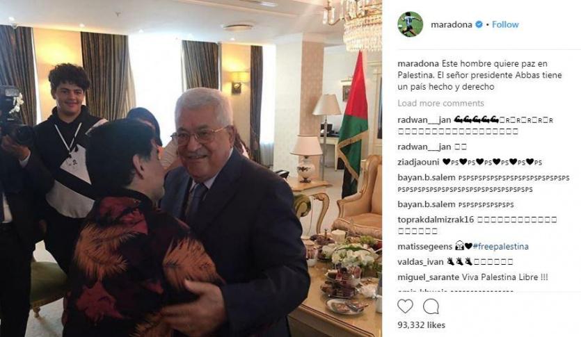 وبعدها، قام نجم الكرة الأرجنتيني برفع صورة في حسابه على انستغرام تجمع بينه وبين الرئيس، كتب تعليقا عليها "هذا الرجل يريد السلام في فلسطين. لدى الرئيس دولة وحق".