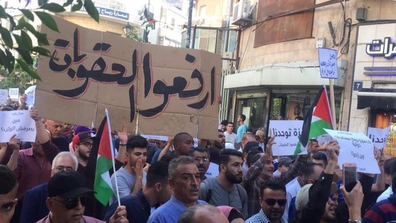 مسيرات وسط رام الله مطالبة السلطة برفع العقوبات عن غزة