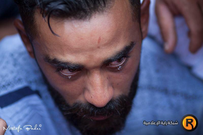 شاب تذرف دموعه أثناء تشييع الطفل الشهيد أركان مزهر 15)عاماً إلى مثواه الأخير، ظهر اليوم في مخيم الدهيشة في بيت لحم.