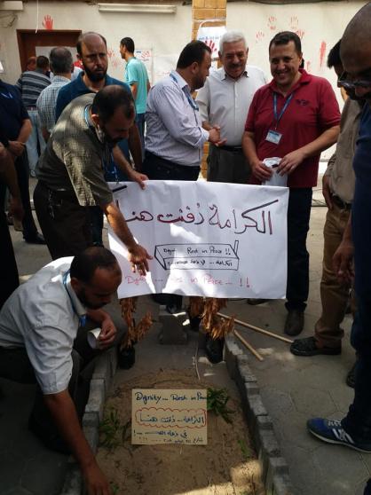 أقام اتحاد الموظفين في وكالة غوث وتشغيل اللاجئين "أونروا" خيمة اعتصام دائمة داخل المقر الرئيس لـ"أونروا" في مدينة غزة، وذلك لاستقبال عائلات وأبناء الموظفين المهددين بالفصل.