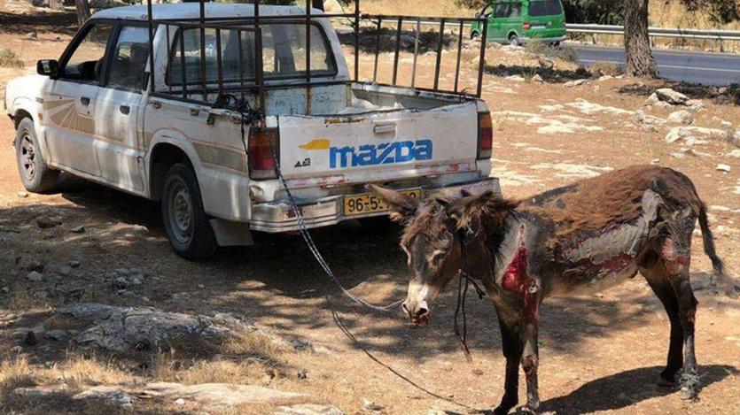 صورة تظهر الحمار وقد تعرض لتعذيب شديد