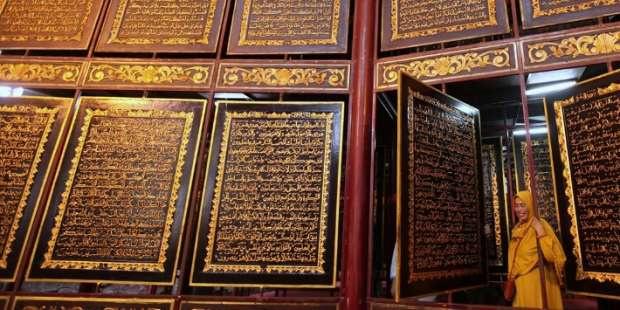 نجح متحف "القرآن الأكبر" في مدينة باليمبانج الإندونيسية، في استقطاب الزوار من مختلف أرجاء العالم، لرؤية أكبر نسخة قرآن منقوشة على ألواح خشبية ضخمة.